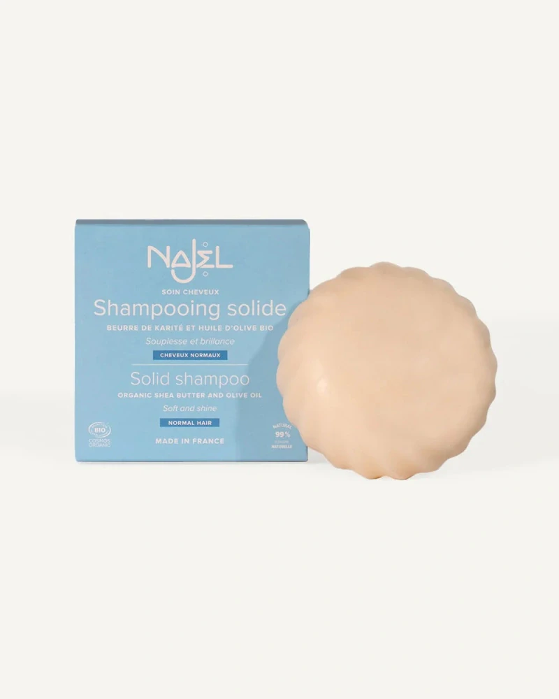 Rozhodněte se pro tuhý šampon Najel a zažijte zdravé a zářivé vlasy. Je obohacený o bambucké máslo, které hloubkově vyživuje a chrání vaše vlasy před vnějšími vlivy. Vavřínový olej a olivový olej čistí pokožku hlavy a regulují přebytečný kožní maz, takže vlasy jsou vždy hebké a lehké.